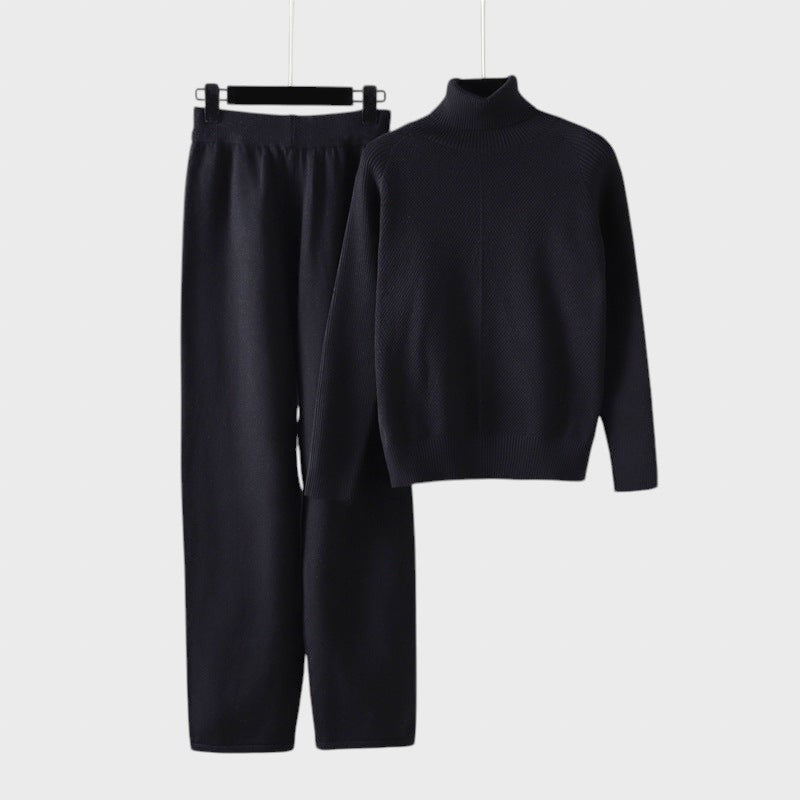 • Плетени панталони: Тези панталони се отличават с широк, тесен крачол и еластична талия, осигуряващи максимален комфорт, без да ограничават движенията. Тази модерна кройка перфектно балансира силуета, допълвайки обема на пуловера.