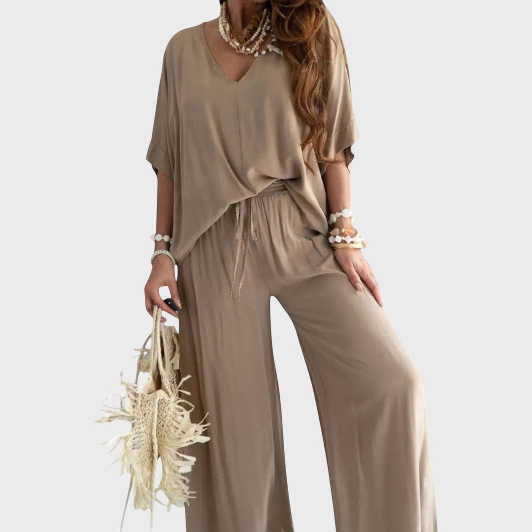 Открийте перфектната комбинация от класически чар и модерен комфорт с този комплект. Идеален за носене през целия ден, той добавя спокойна, непринудена елегантност към всяка визия - от небрежно излизане до по-официален брънч.