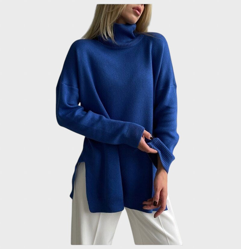 Lyuba™ - Оувърсайз плетен пуловер с поло яка