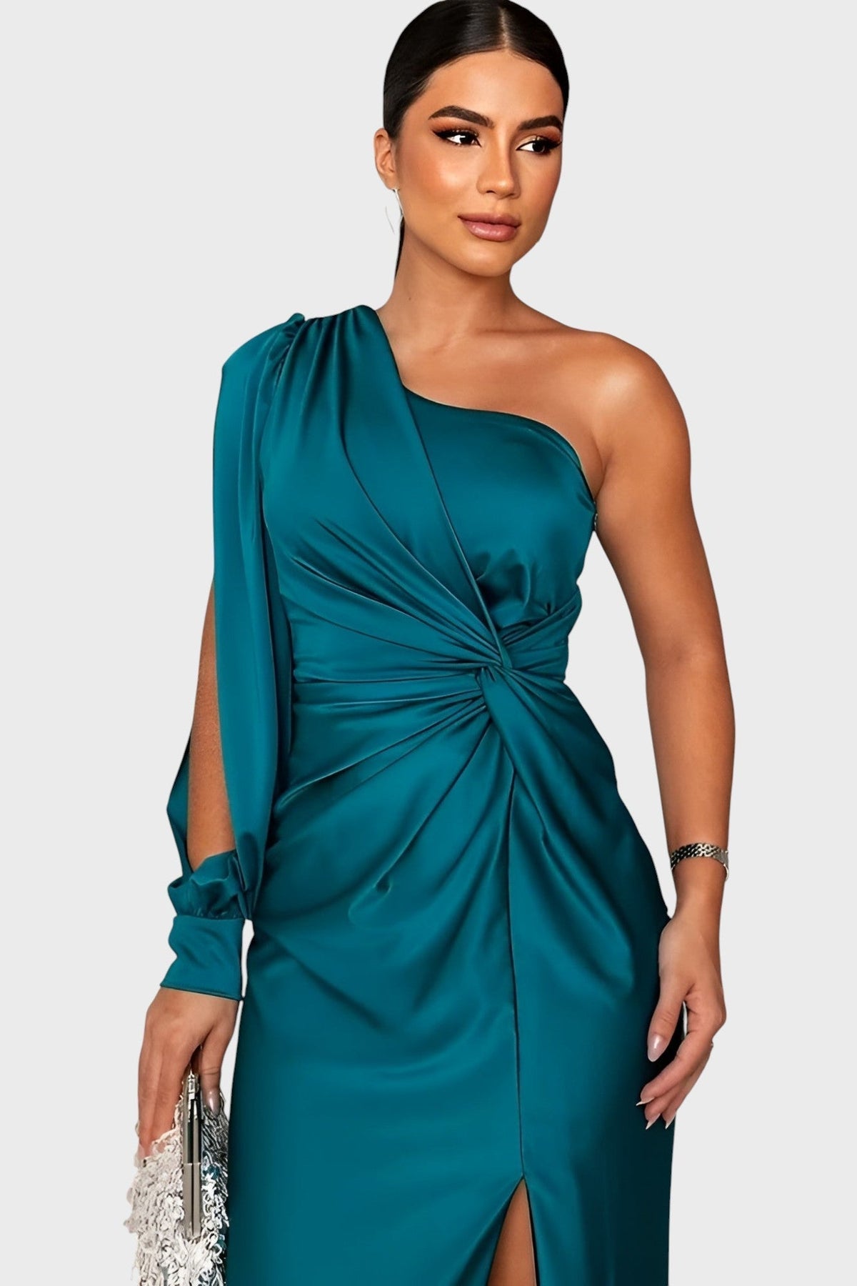 • Драматичен асиметричен дизайн: Отличаващият се дизайн е моделът с едно рамо, който добавя мигновена, съвременна елегантност. Презрамката се удължава в свободен, леко отворен ръкав, създавайки модерен и изтънчен ефект на пелерина.